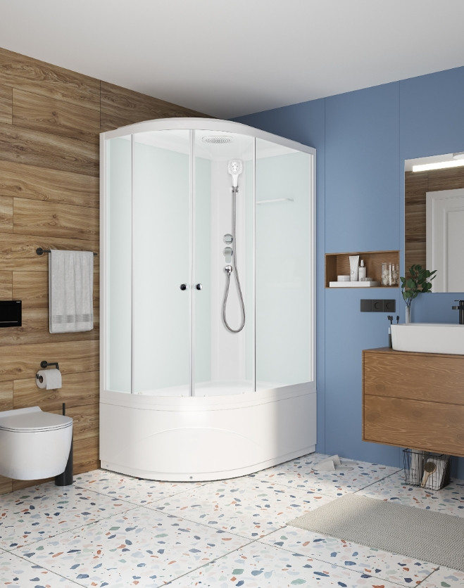 Душевая кабина Delight Slim 128 high 120*80*218 (выс.под/бел.стенки/сатин-матированное стекло) левая/правая