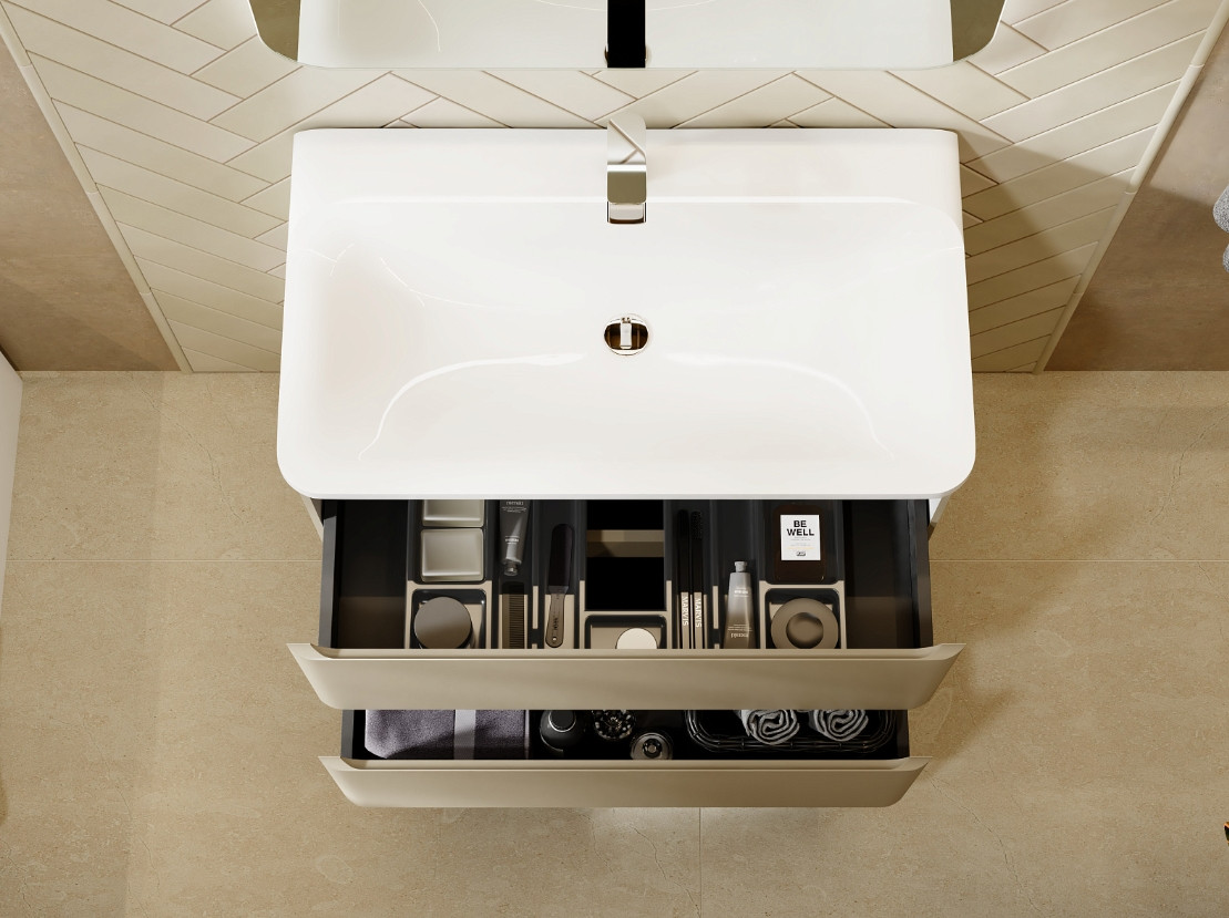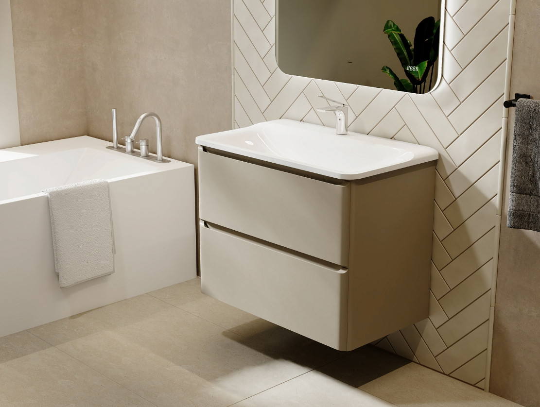 Тумба "Welto 80" 2 ящика/подвесная (светло-коричневая)+Раковина "Welto 80" (белая)
