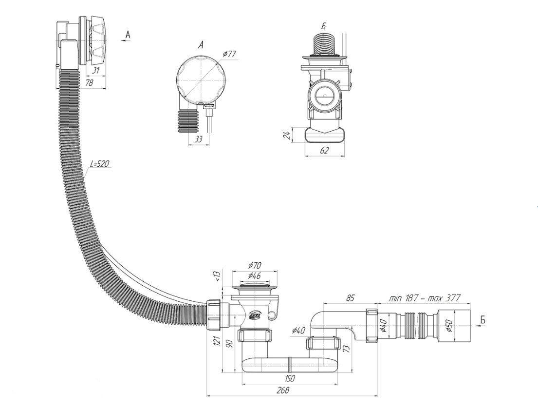 -Компактный плоский сифон экономит место под раковиной, облегчая установку даже в ограниченном пространстве.-Гибкая труба позволяет легко подстраиваться под особенности монтажа и обеспечивает герметичное соединение.
