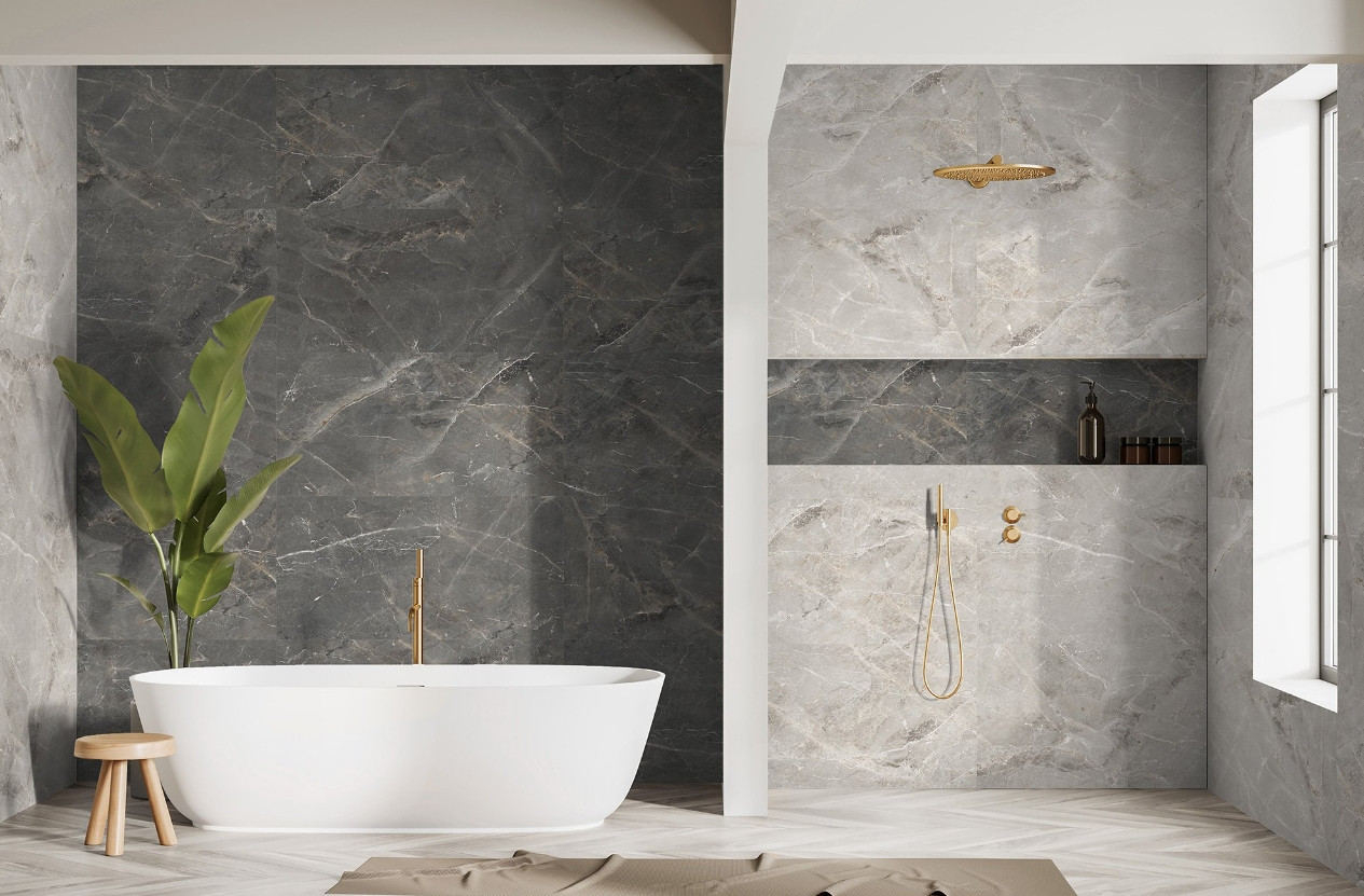 Керамогранита Tulip представляет собой имитацию камня с монохромным фоном, который подчеркивают белые и бежево-золотистые прожилки. Коллекция выполнена в двух расцветках – сером и темно-сером. Поверхность плиты усиливает восприятие текстуры, делая рисунок глубоким, а цвета более насыщенными. Нежный рисунок позволяет создать атмосферу спокойствия и расслабленности, что особенно актуально для отделки ванной, спальни или гостиной. Коллекция идеально впишется в современный интерьер в качестве базы или для выделения отдельных зон.