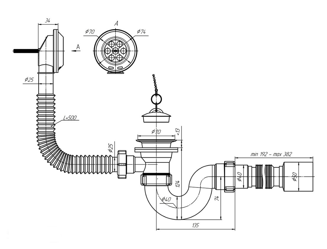 -Перелив обеспечивает защиту от переполнения ванны, предотвращая возможные протечки и повреждения.-Гибкая труба 40×50 мм облегчает установку сифона даже в труднодоступных местах и позволяет адаптировать конструкцию под особенности монтажа.