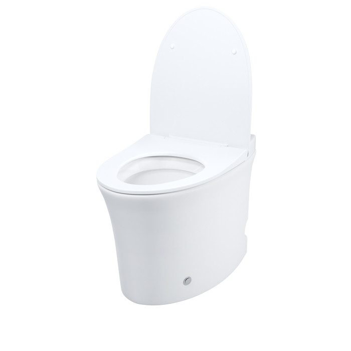 Приставной унитаз с функцией имульсного смыва, с сиденьем из дюропласта с функциями Soft Close и Easy Fix.