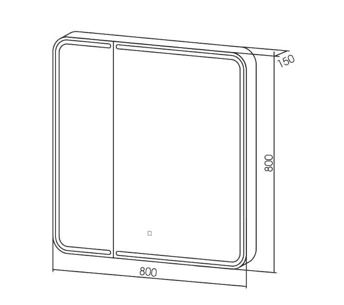 Короткие касания светящейся области включают/выключают подсветку, длительное касание меняет яркость свечения. Шкафчик оборудован стеклянными полочками для хранения, розеткой, доводчиком для плавного закрывания дверцы.